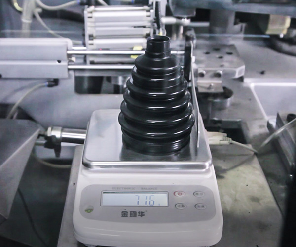 機(jī)器生產(chǎn)出來的球籠防塵罩,波峰及波谷處相同截面的壁厚均勻,實(shí)現(xiàn)產(chǎn)品自動